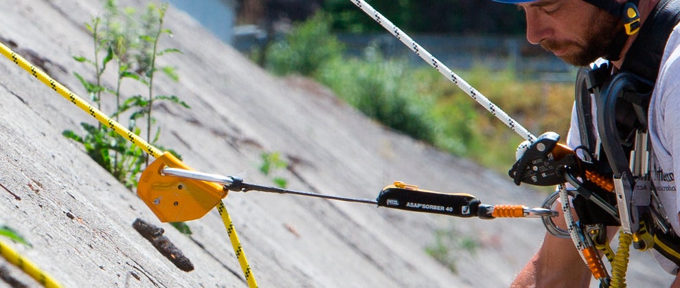 Einfaches einstellbares Verbindungsmittel mit integriertem FalldämpferDas einfache einstellbare ABSORBICA-I VARIO-Verbindungsmittel mit kompaktem Falldämpfer ist zur Fortbewegung an einem horizontalen Geländerseil (Textil- oder Drahtseil) oder auf einer Hebebühne ohne Passieren von Zwischensicherungen konzipiert.Es ist für Anwender/-innen geeignet, die zwischen 60 und 140 kg wiegen.Es ist mit dem VARIO-Einstellsystem ausgestattet, um die Länge des Verbindungsmittels anzupassen und somit die potenzielle Sturzhöhe zu reduzieren.Das VARIO-Einstellsystem lässt sich mit einer Hand bedienen und ermöglicht eine einfache Längenverstellung des Verbindungsmittels, um die Sturzhöhe zu reduzieren.Im Falle eines Sturzes wird der auf die anwendende Person ausgeübte Fangstoß durch das progressive Aufreißen des Gurtbands des Falldämpfers reduziert. Die Verbindungsmittel sind für Anwender/-innen bestimmt, die zwischen 60 und 140 kg wiegen.Um die Einsätze abzusichern, bietet Petzl ein Modul zur schnellen und einfachen Berechnung des Sturzraums an, mithilfe des Gewichts der anwendenden Person und der Länge des Verbindungsmittels. Verfügbar auf Petzl.com.
